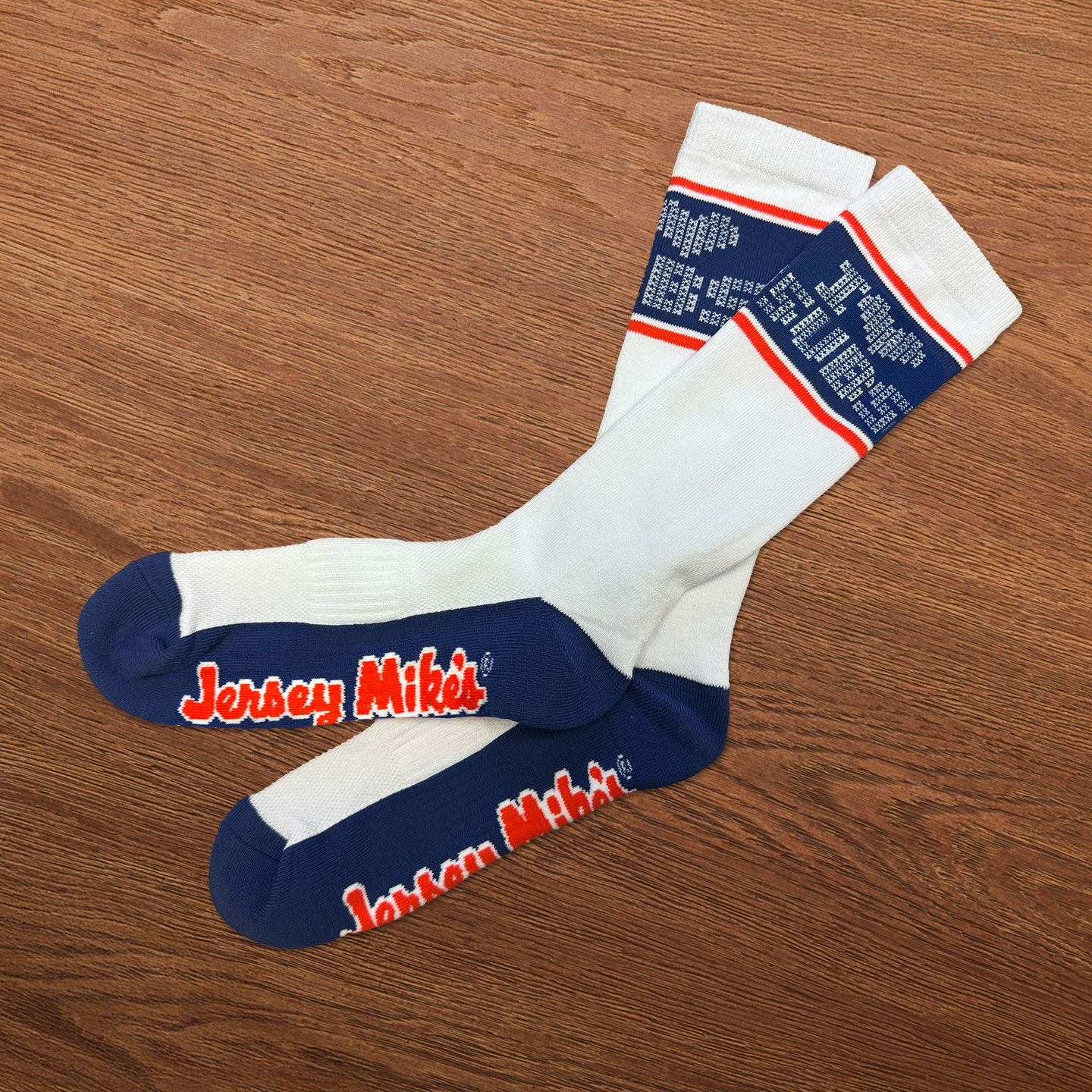 Step into the season with the ultimate stocking stuffer for any sub lover! These festive Jersey Mike’s crew socks bring comfort, personality, and a whole lot of brand pride to your holiday wardrobe.